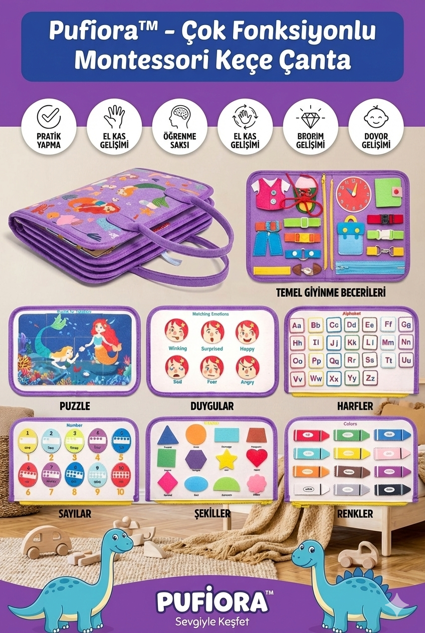 Pufiora™ Minik El Çantası, “oyuncak olsun” diye değil; çocuğunuz gerçek hayatta kullanacağı becerileri kazansın diye tasarlandı. 🧠✨